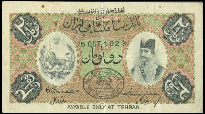 اولین بار در زمان ناصرالدین شاه قاجار (دهه ۱۲۶۰ هجری شمسی) و با همکاری بانک شاهنشاهی ایران (Imperial Bank of Persia) اسکناس بهصورت رسمی وارد چرخه پولی کشور شد. این بانک که امتیازش در سال ۱۸۸۹ میلادی از دولت ایران گرفته بود، اسکناسهایی را با ارزشهای مختلف از ۱ تا ۱۰۰۰ تومان منتشر کرد.